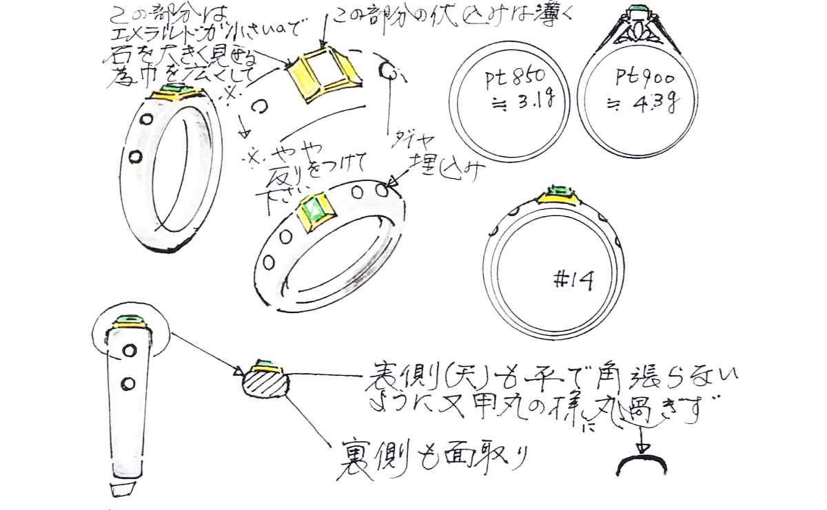 デザイン画の段階から、婚約指輪や結婚指輪や記念日にふさわしい世界に一つだけの商品を製作致します。
