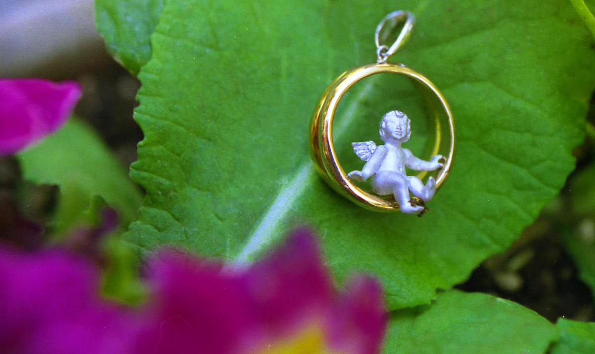 結婚指輪にデザイナー物のエンジェルを乗せペンダントに